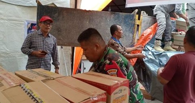 Setibanya di lokasi, truk bantuan langsung dibongkar oleh petugas dan relawan. Logistik yang dikirim meliputi beras ukuran 5 kilogram dan 10 kilogram dalam jumlah puluhan karung, ratusan dus mie instan, puluhan kilogram gula pasir, serta puluhan dus air mineral. Seluruh bantuan disiapkan untuk memenuhi kebutuhan dasar masyarakat yang terdampak banjir dan longsor.
